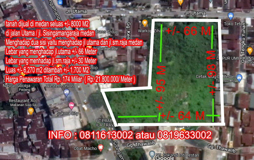 Lebar yang menhadap jl.sm.raja +/- 30 Meter